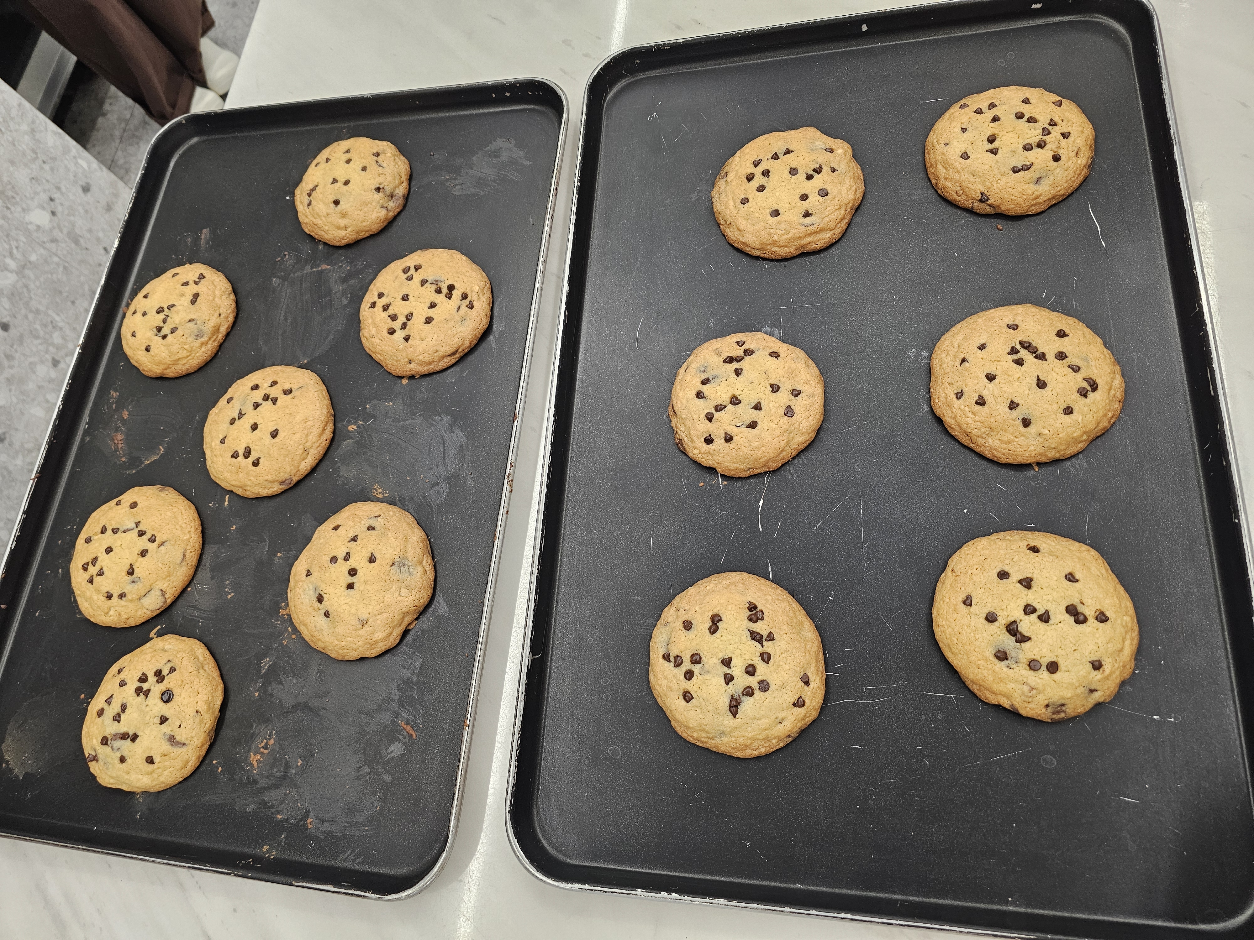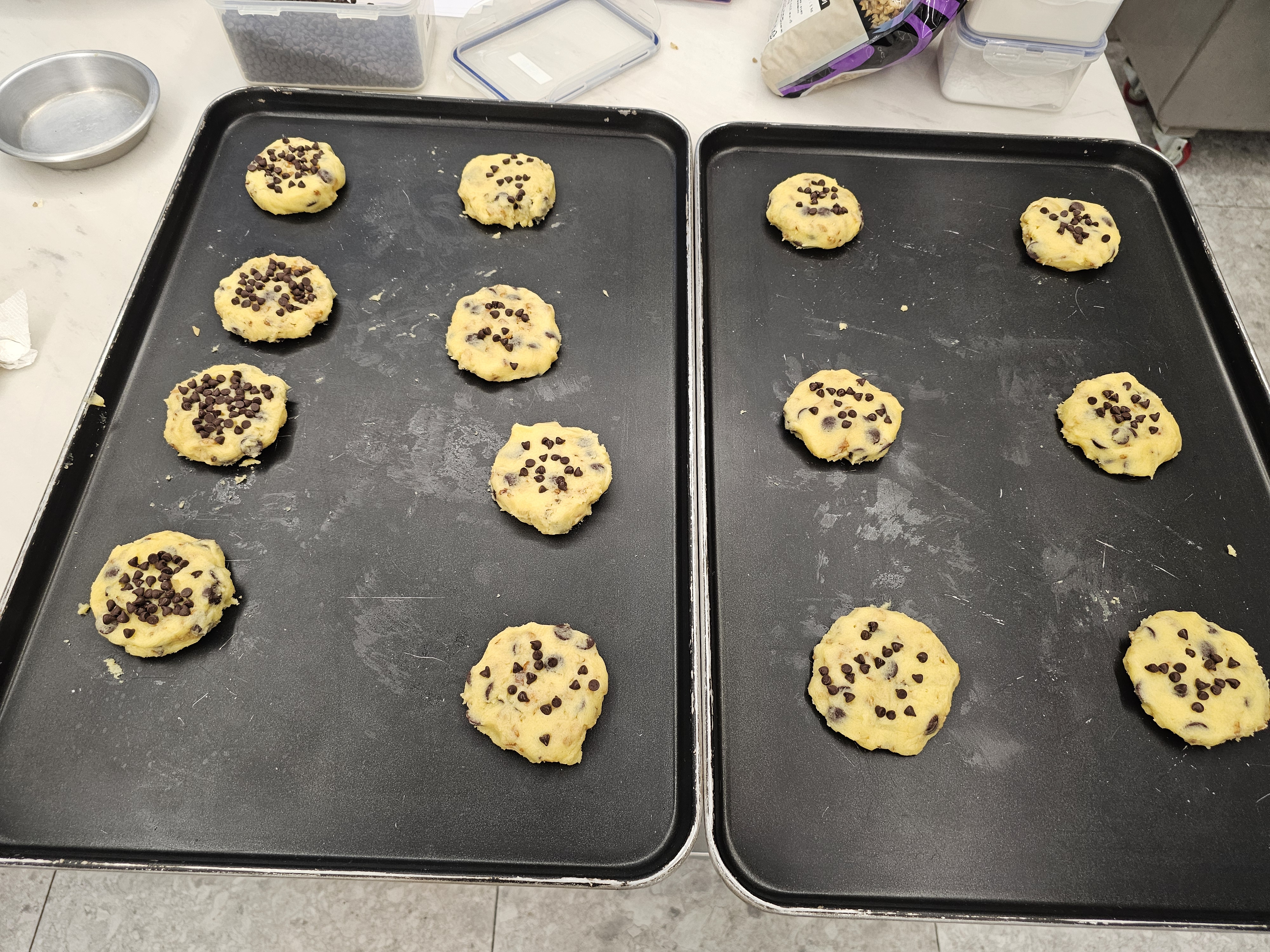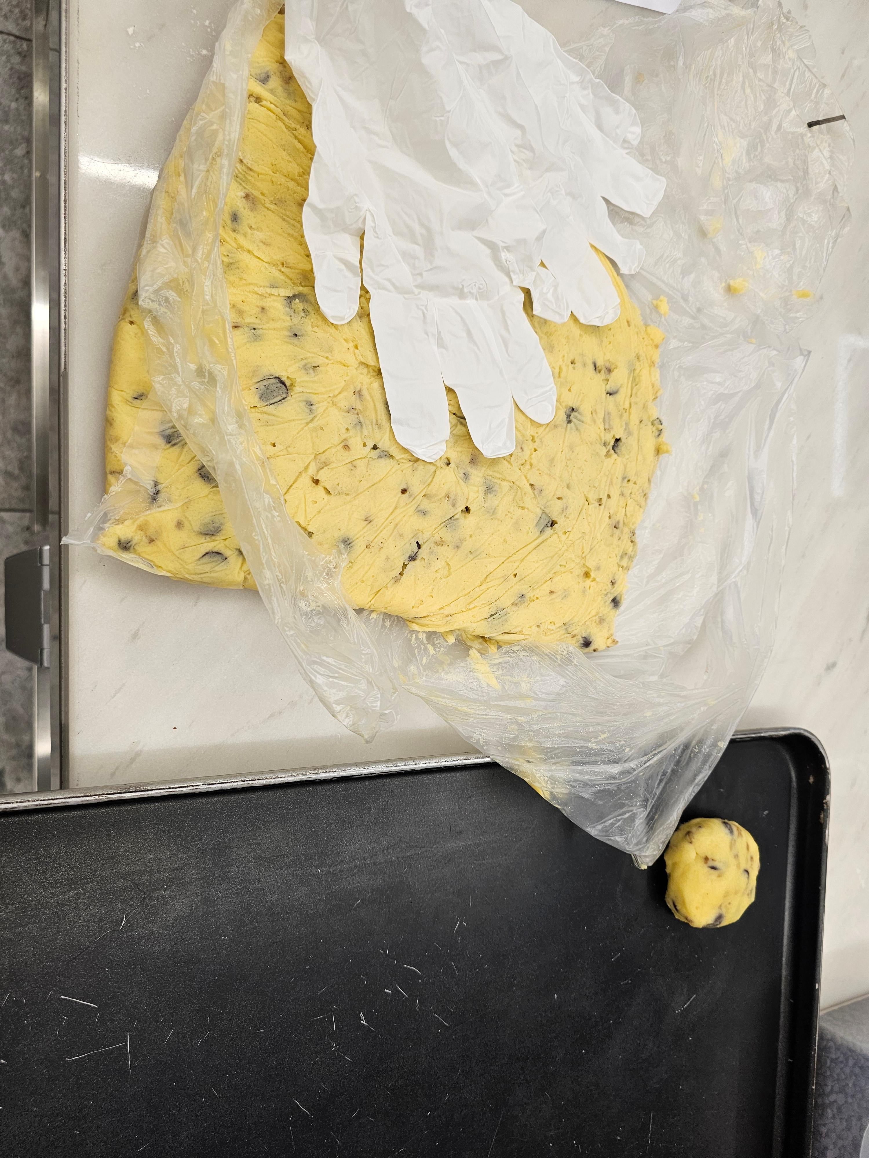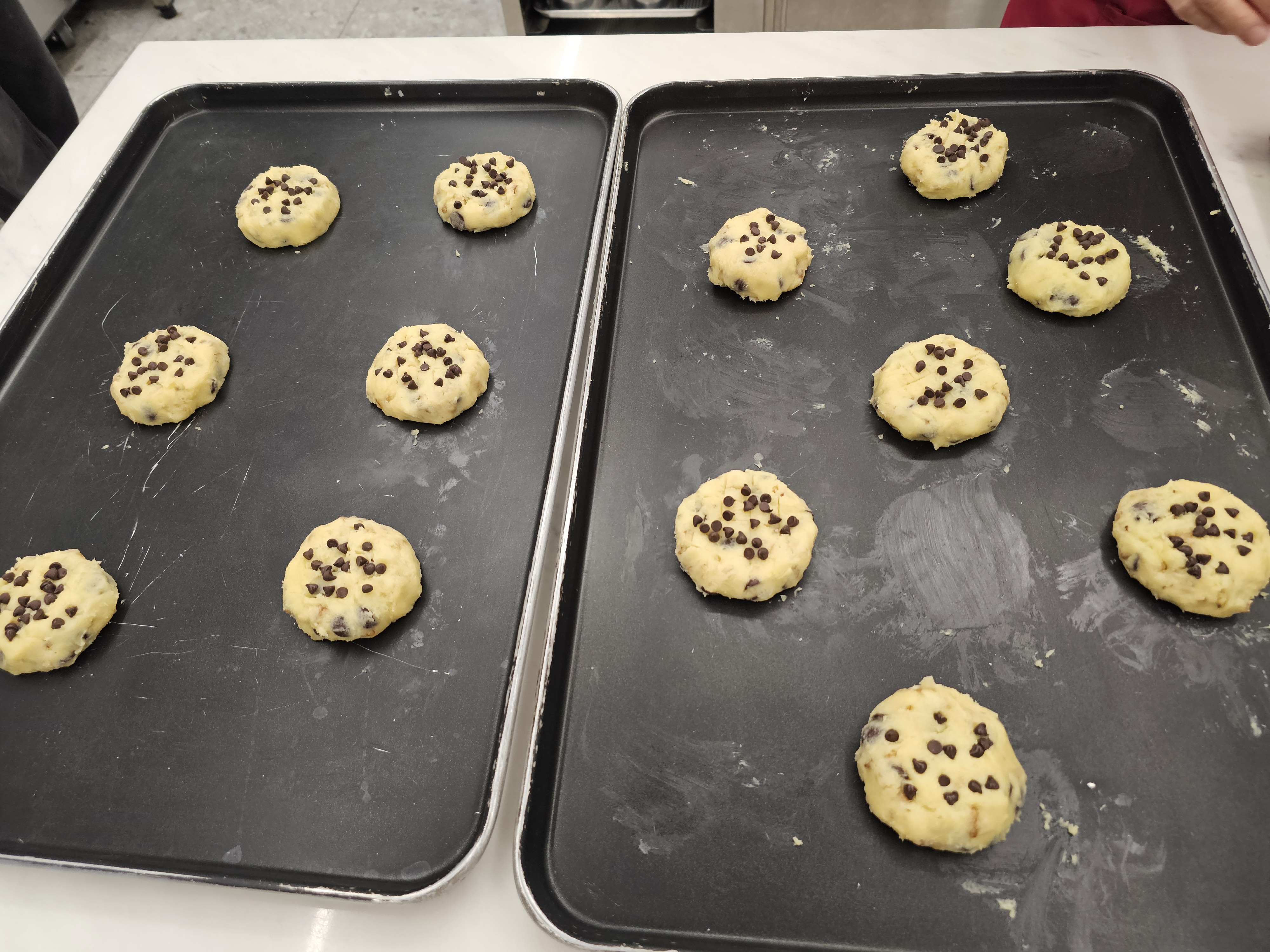 동그랗게 만든 후, 팬닝(살짝 눌러주고 초코칩 올리기)