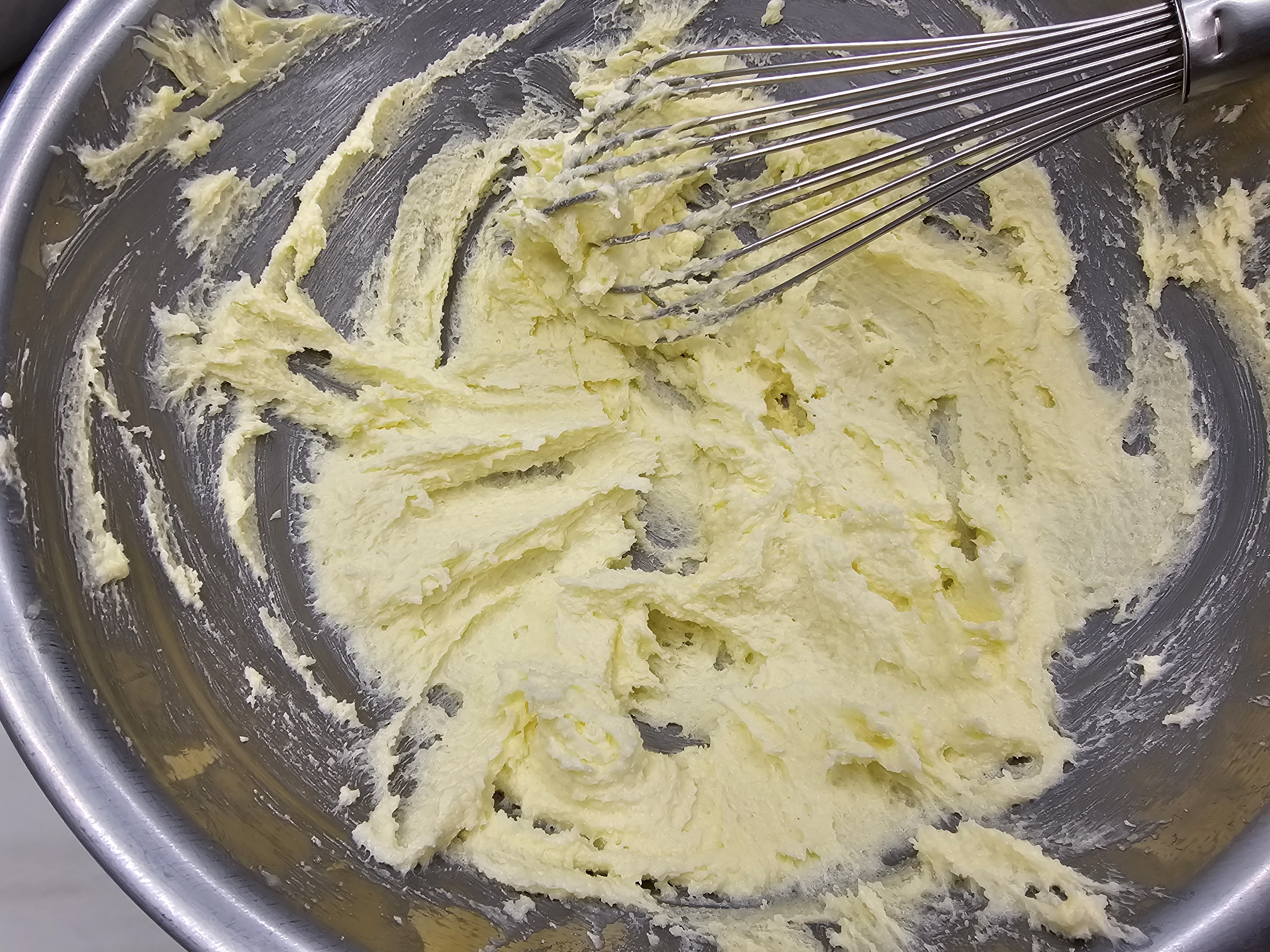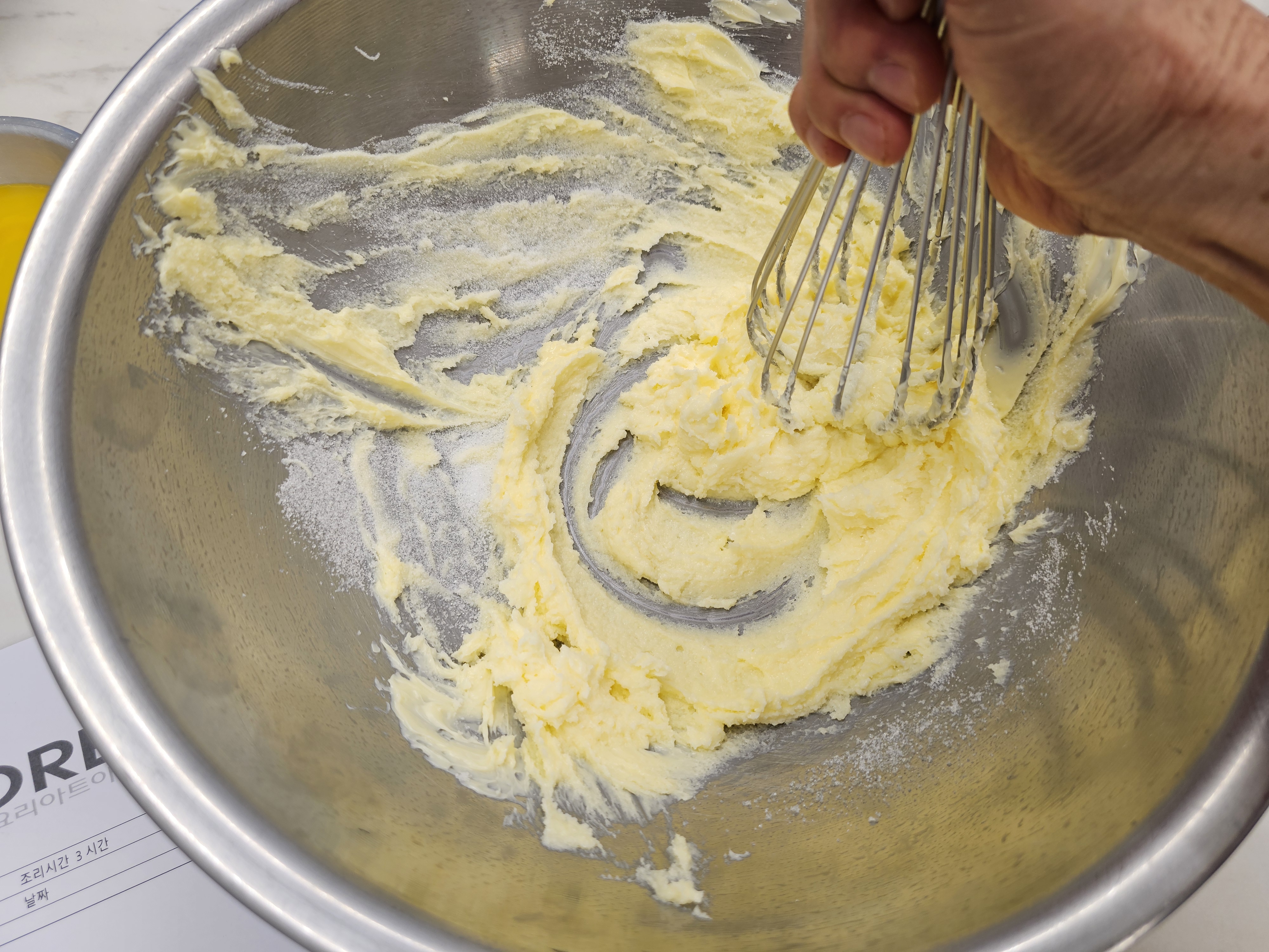 3. 설탕을 투입하면서 (3번에 나누어서 ) 가볍게 섞어준다.