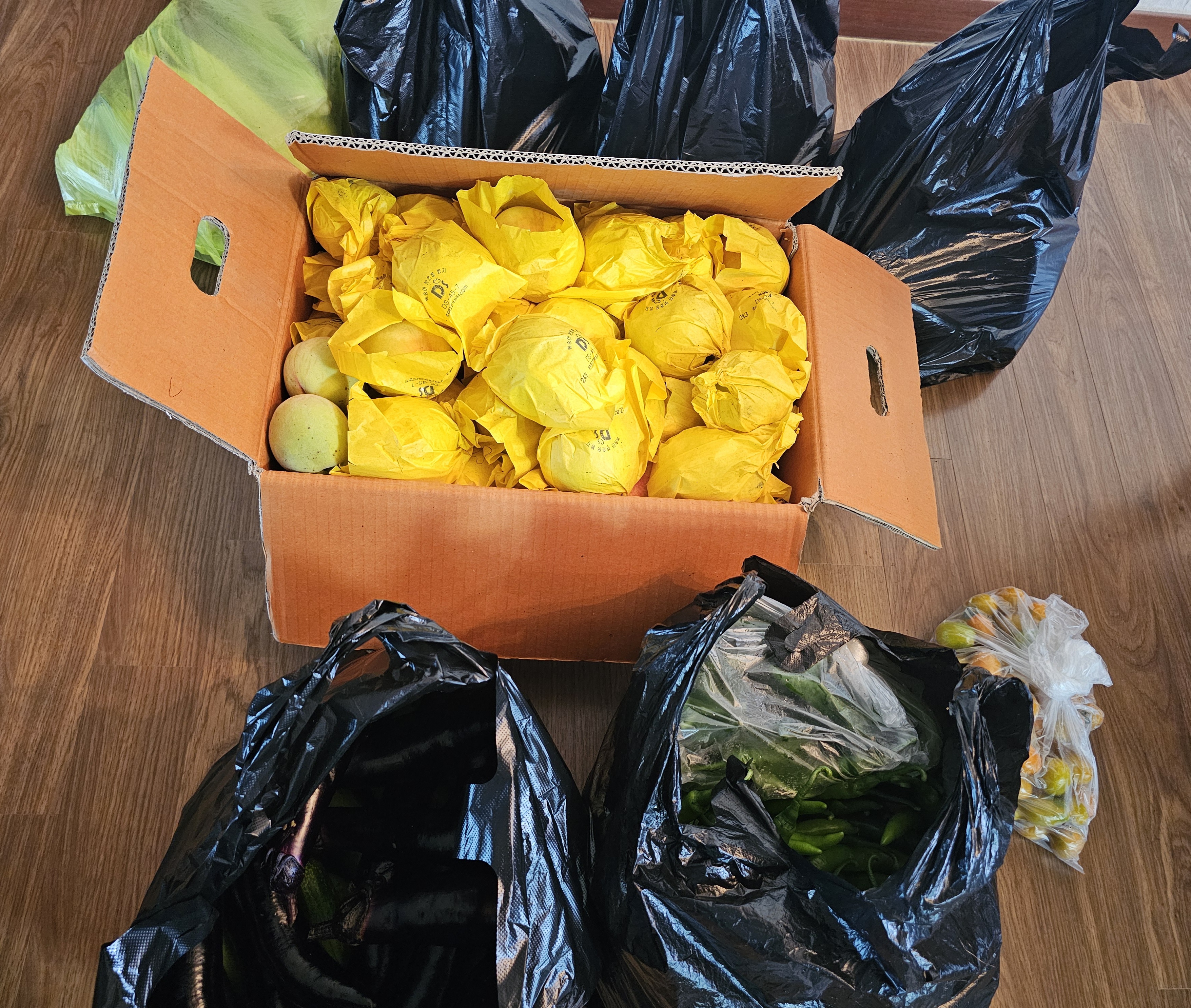 남편이 전원주택 농산물을 수확해 왔다.