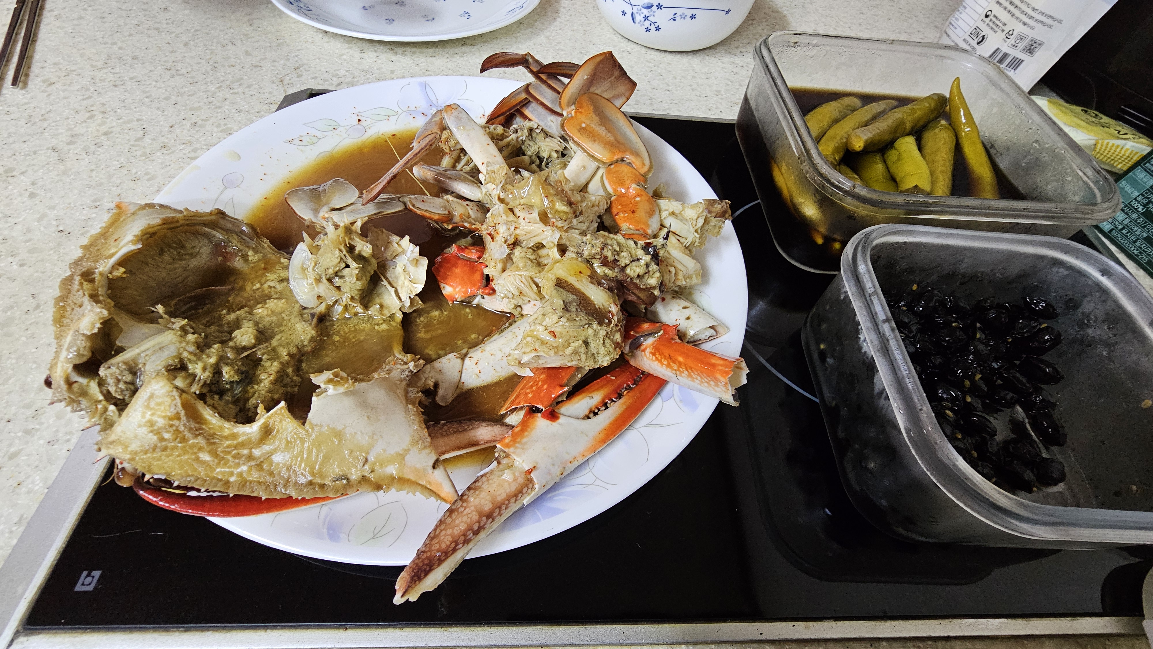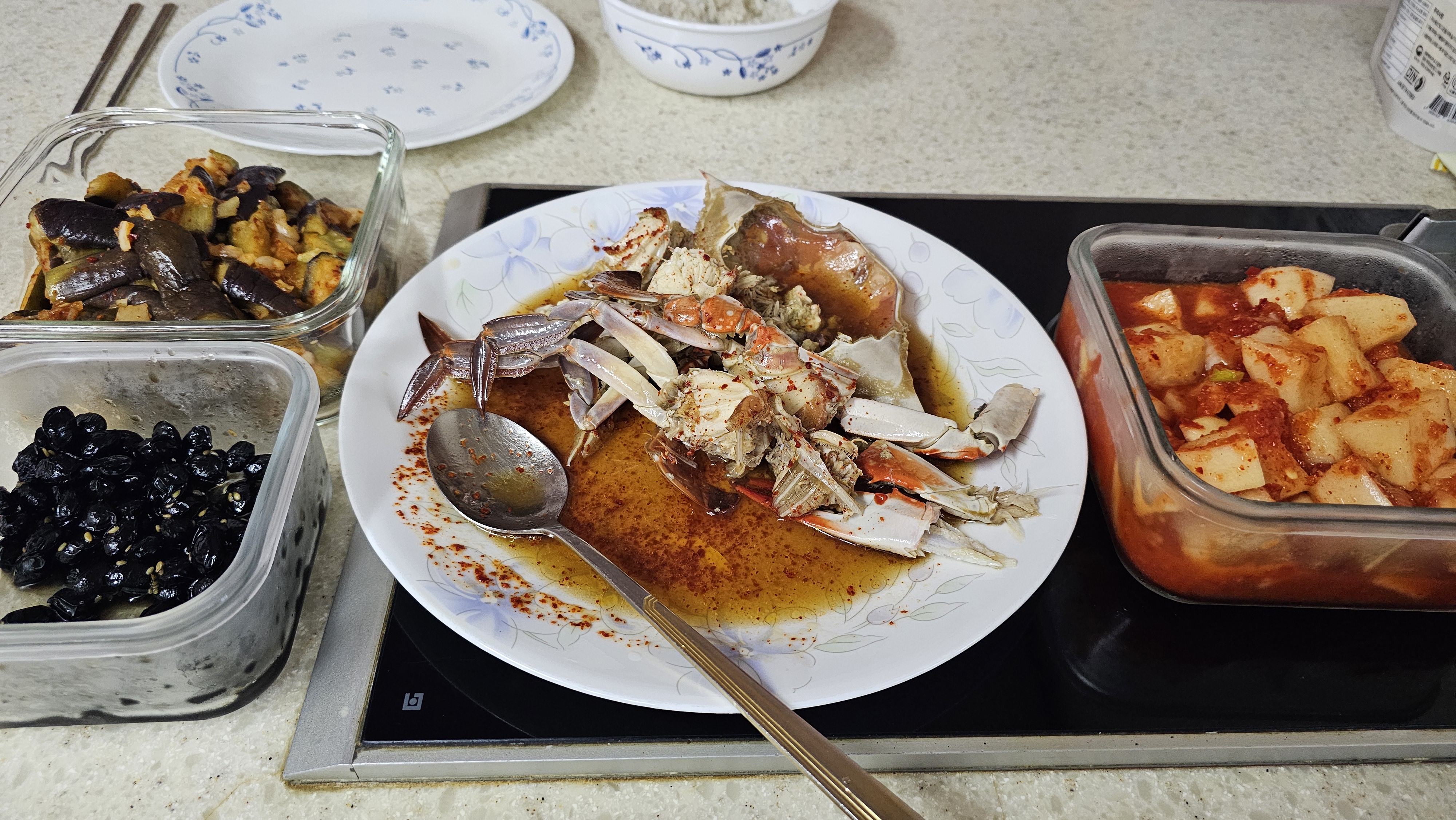 저녁은 꽃게 장조림과 가지나물!