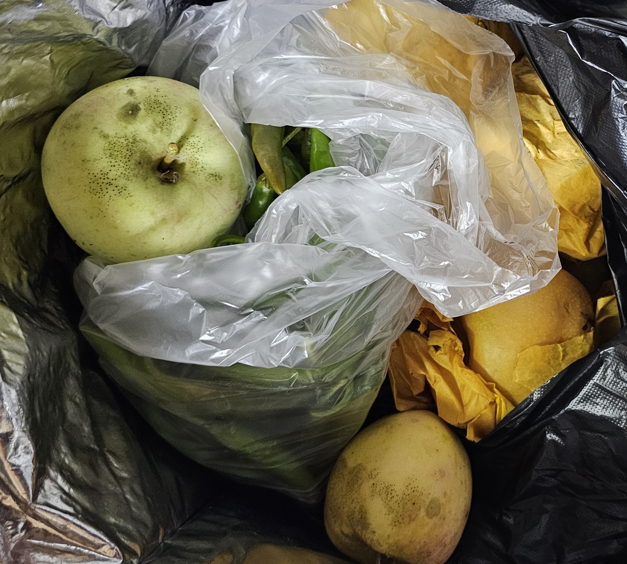 남편이 저녁 때가 되어 전원주택의 농산물을 가지고 귀가.