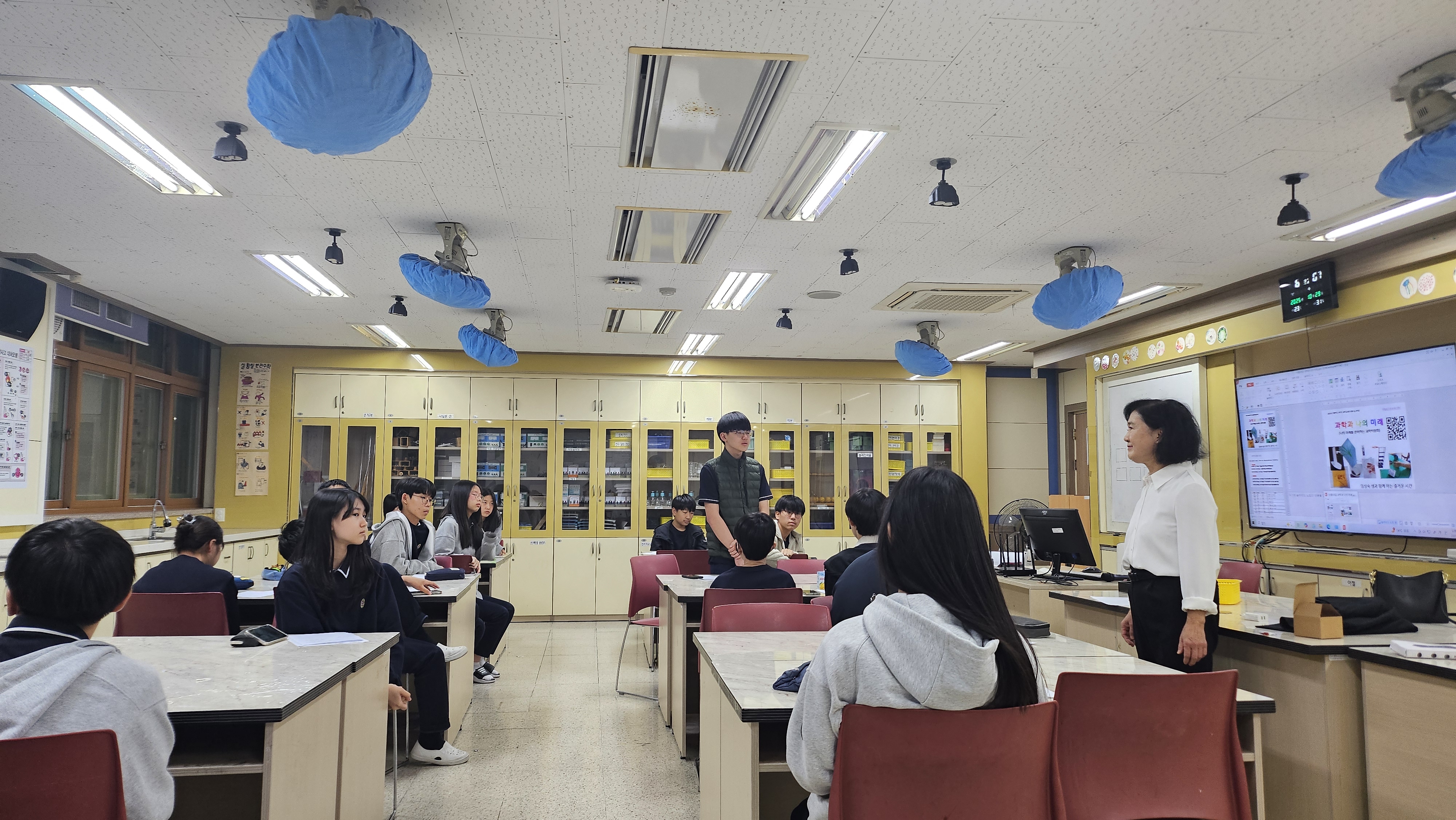 따라서 기말고사도 일찍 치루어지기에 과학교실을 일찍 마감한다.