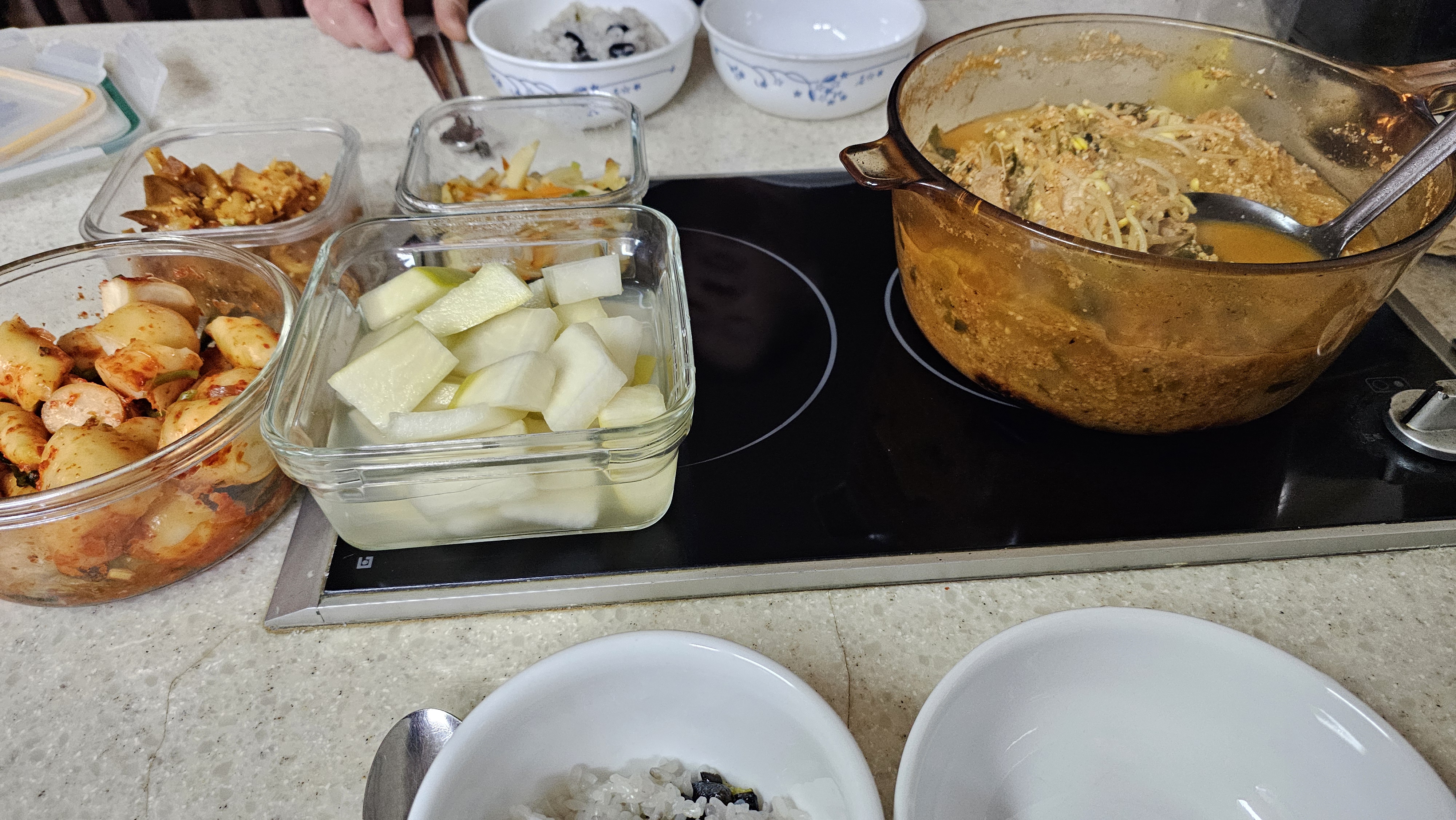 저녁에는 콩을 갈아 콩나물 넣고 만든 비지찌개.