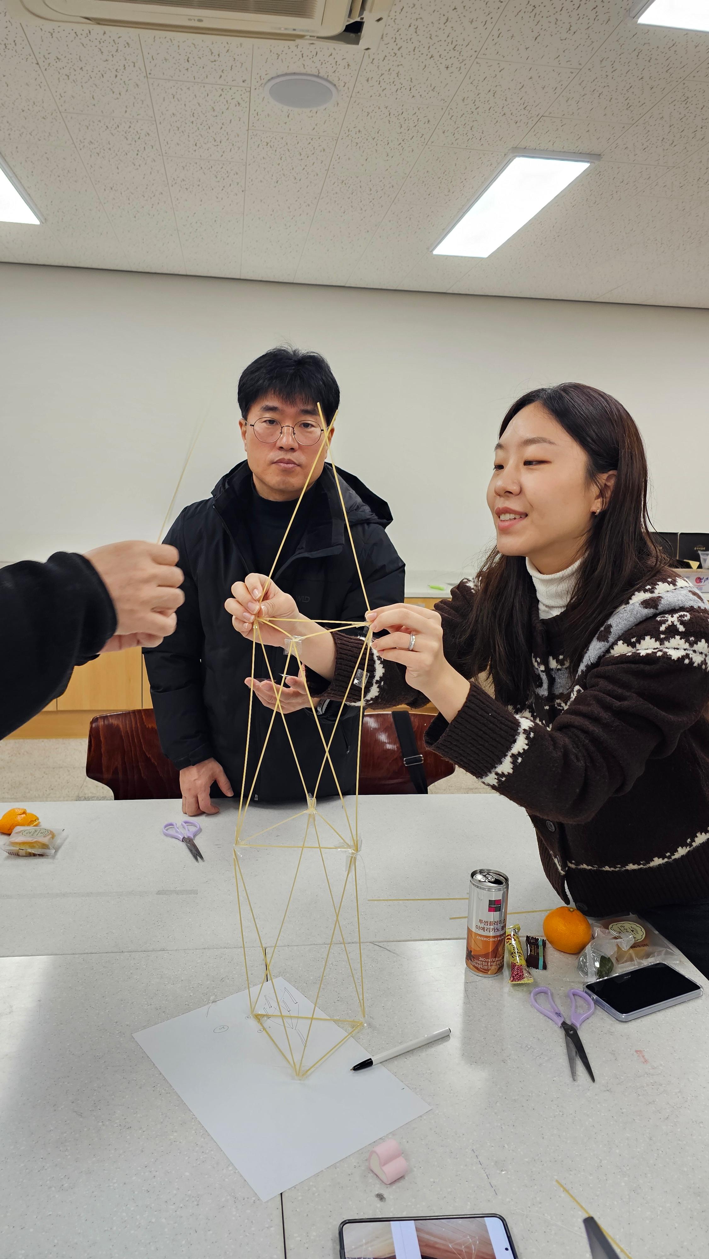 주어진 스파케티 면을 이용하여 누가 높은 곳에 마시멜로를 올릴 수 있는가 하는 게임 형식으로 이루어진다.
