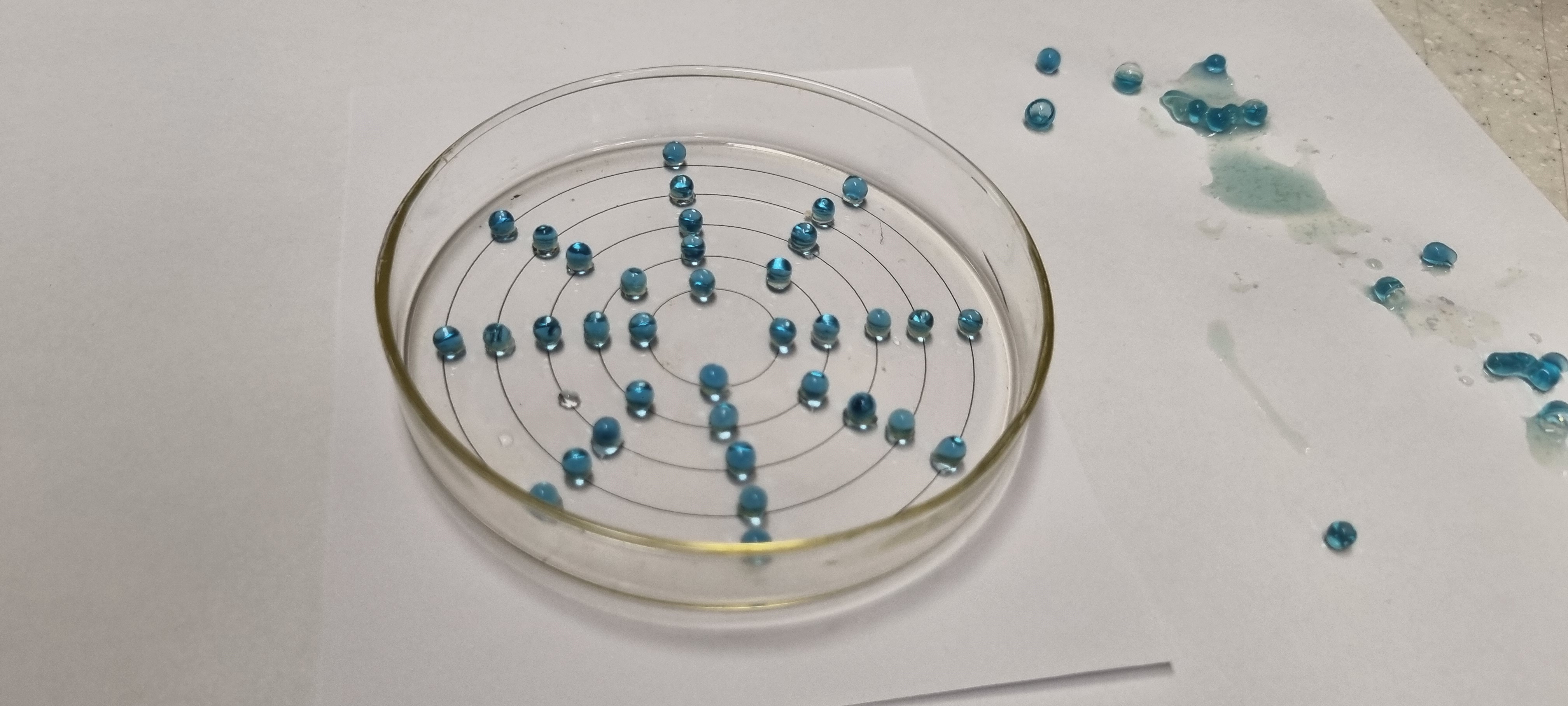 알긴산나트륨과 BTB용액을 섞어주어 알긴산 칼슘 알갱이를 제작하고