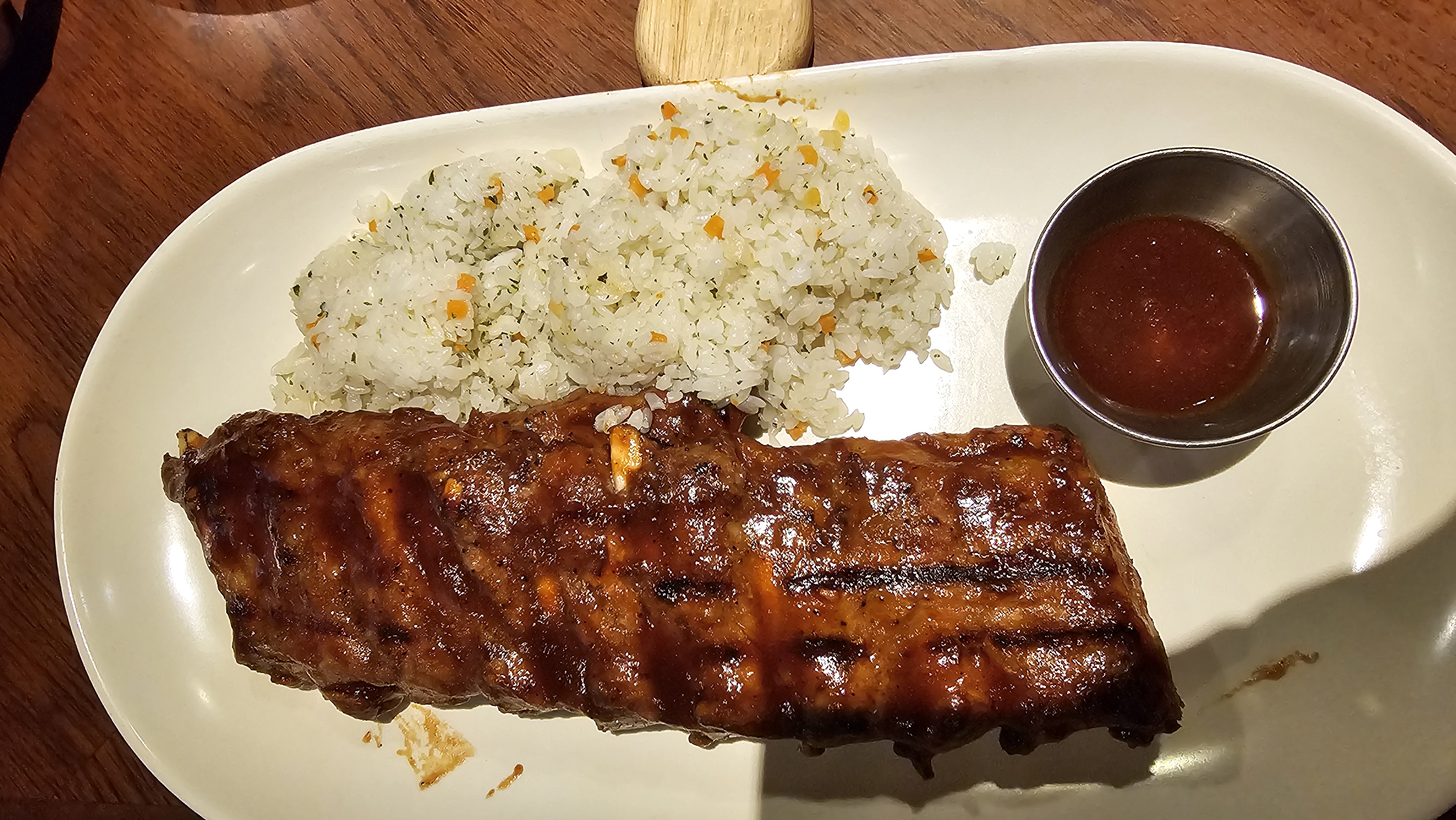 갈비살에 볶음밥, 새우튀김 그리고 와인 한잔씩!