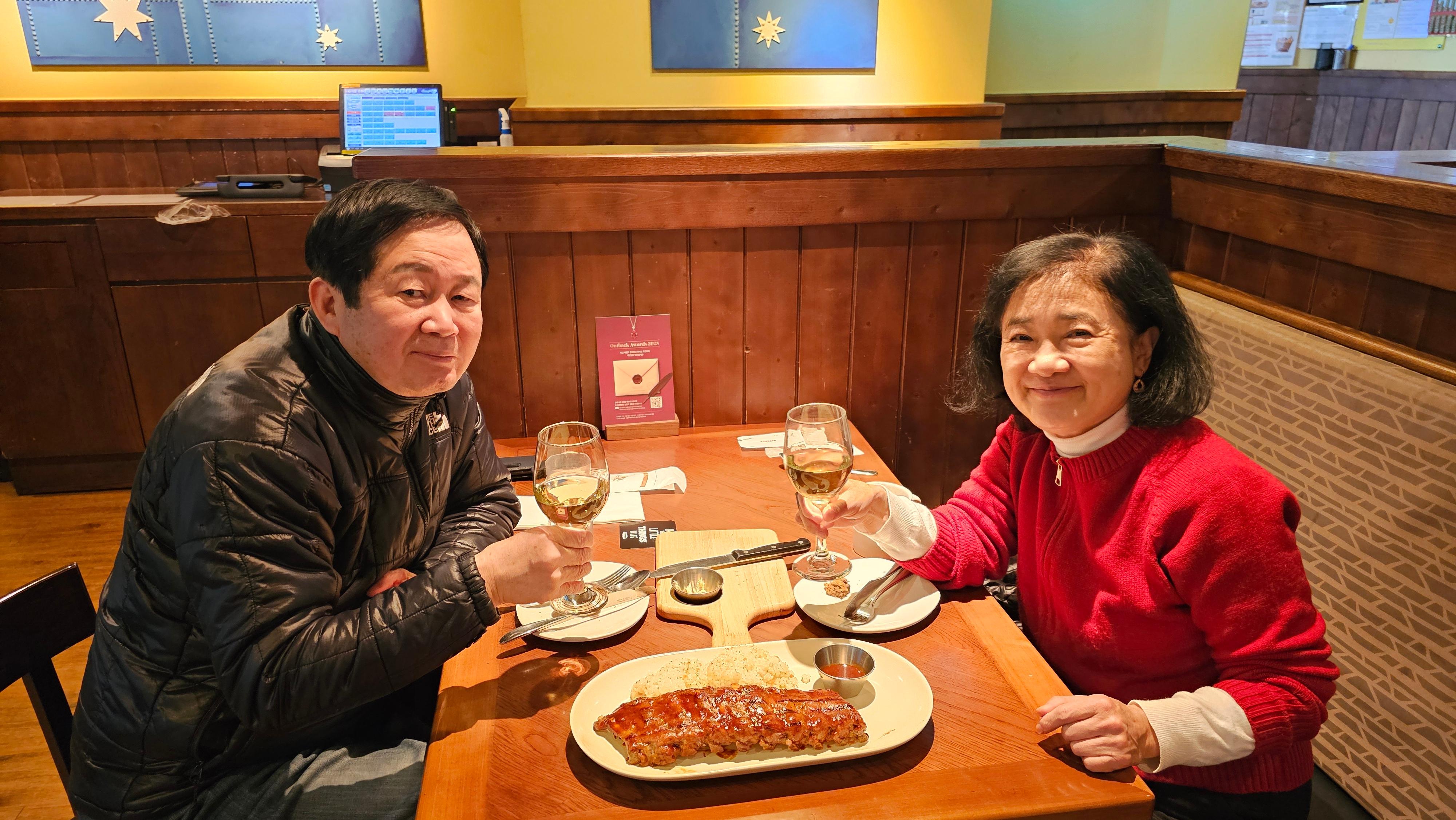 아웃백에서 먹기로 한다.