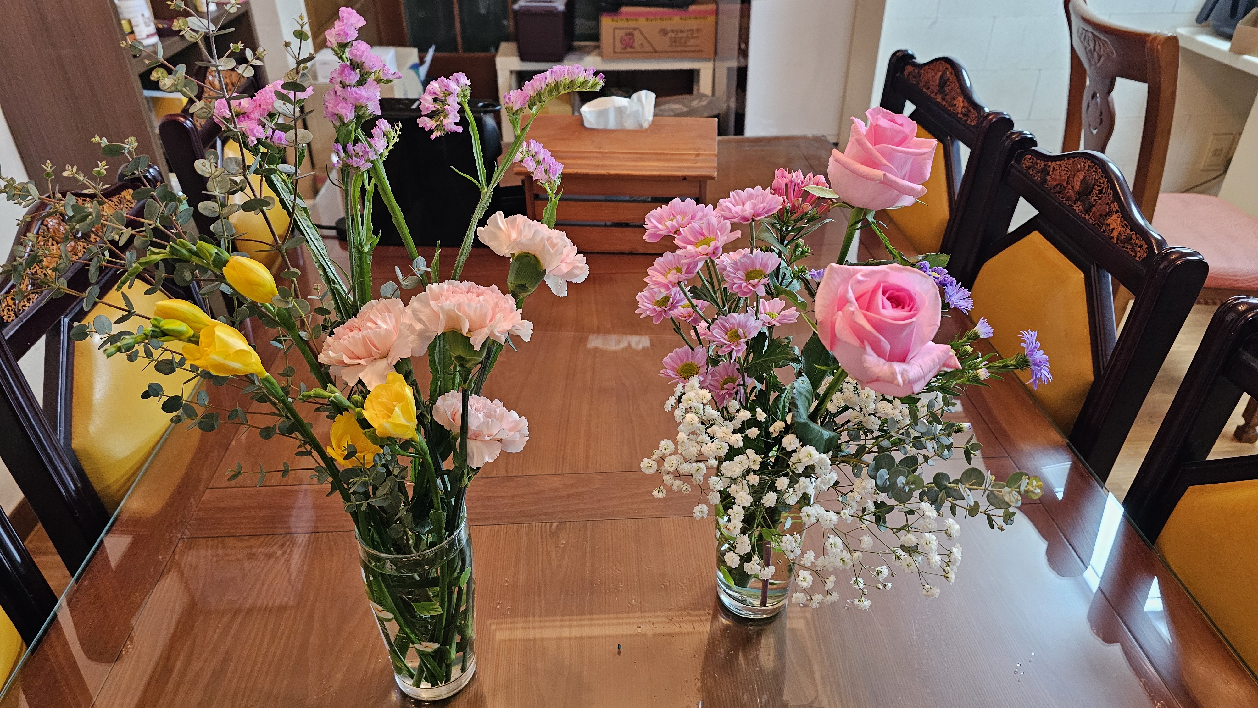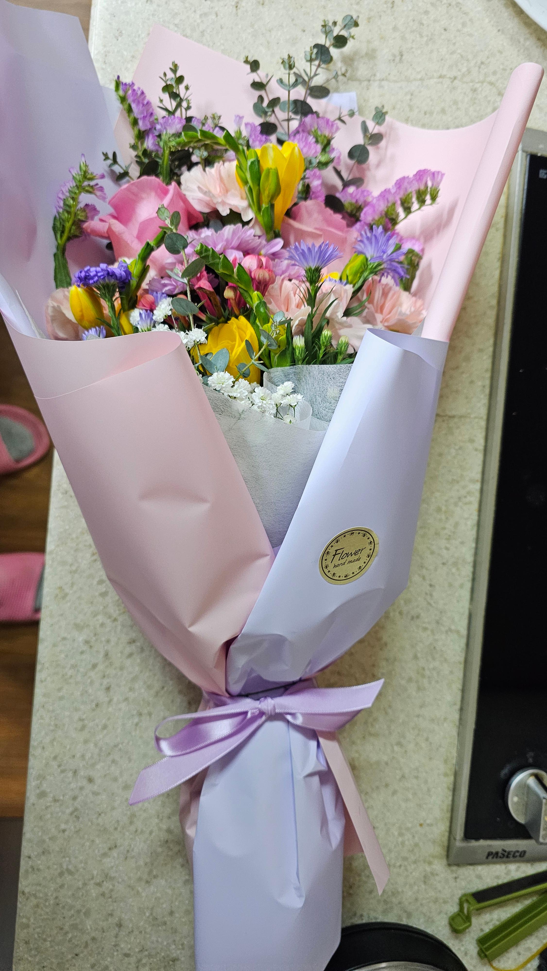 꽃은 절대 사오지 말라고 했는데도 또 꽃이랑 케이크를 사왔다.