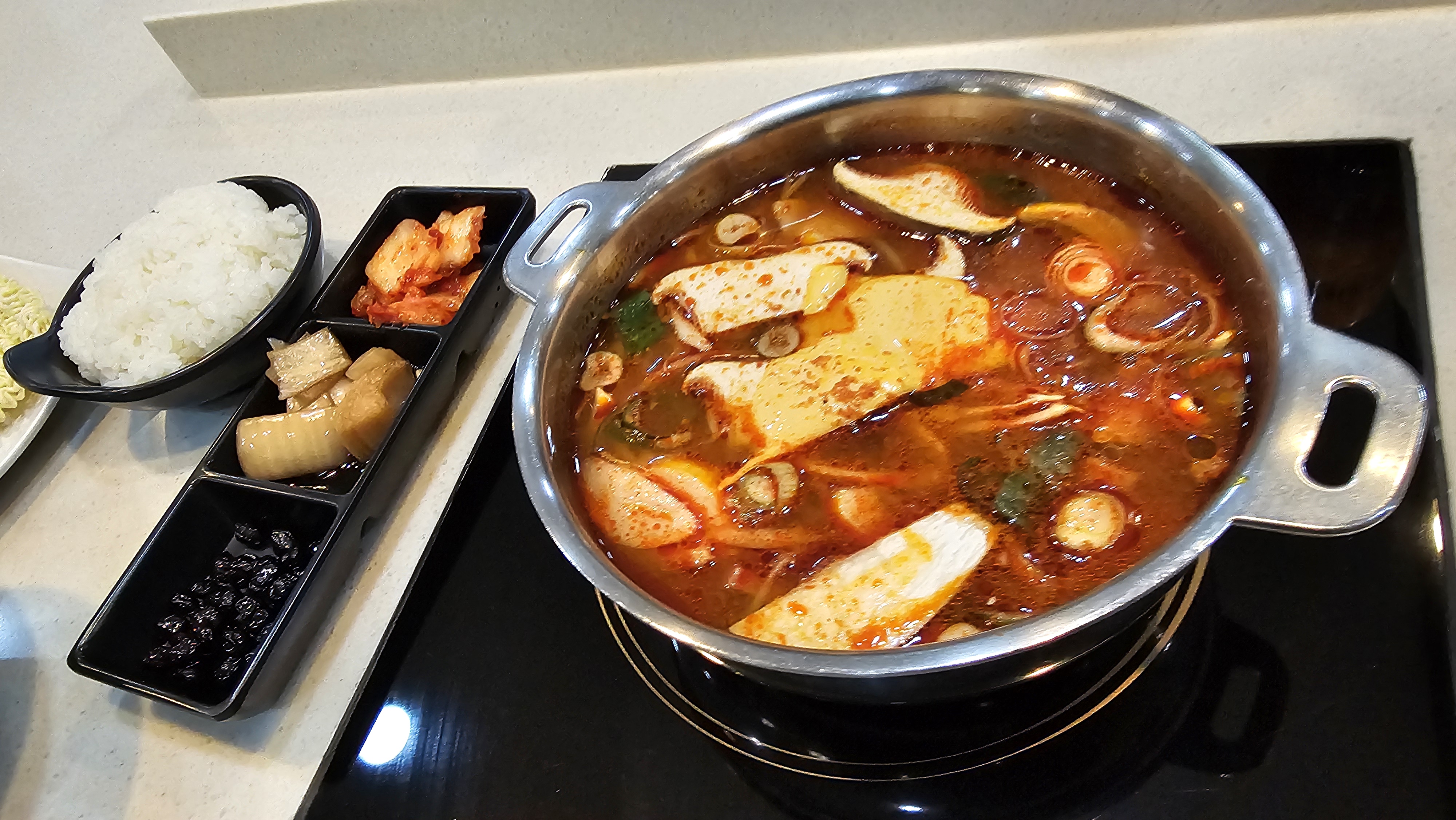 야채 소고기 샤브샤브 1인분과 부대찌개 1인분을 각각 주문.