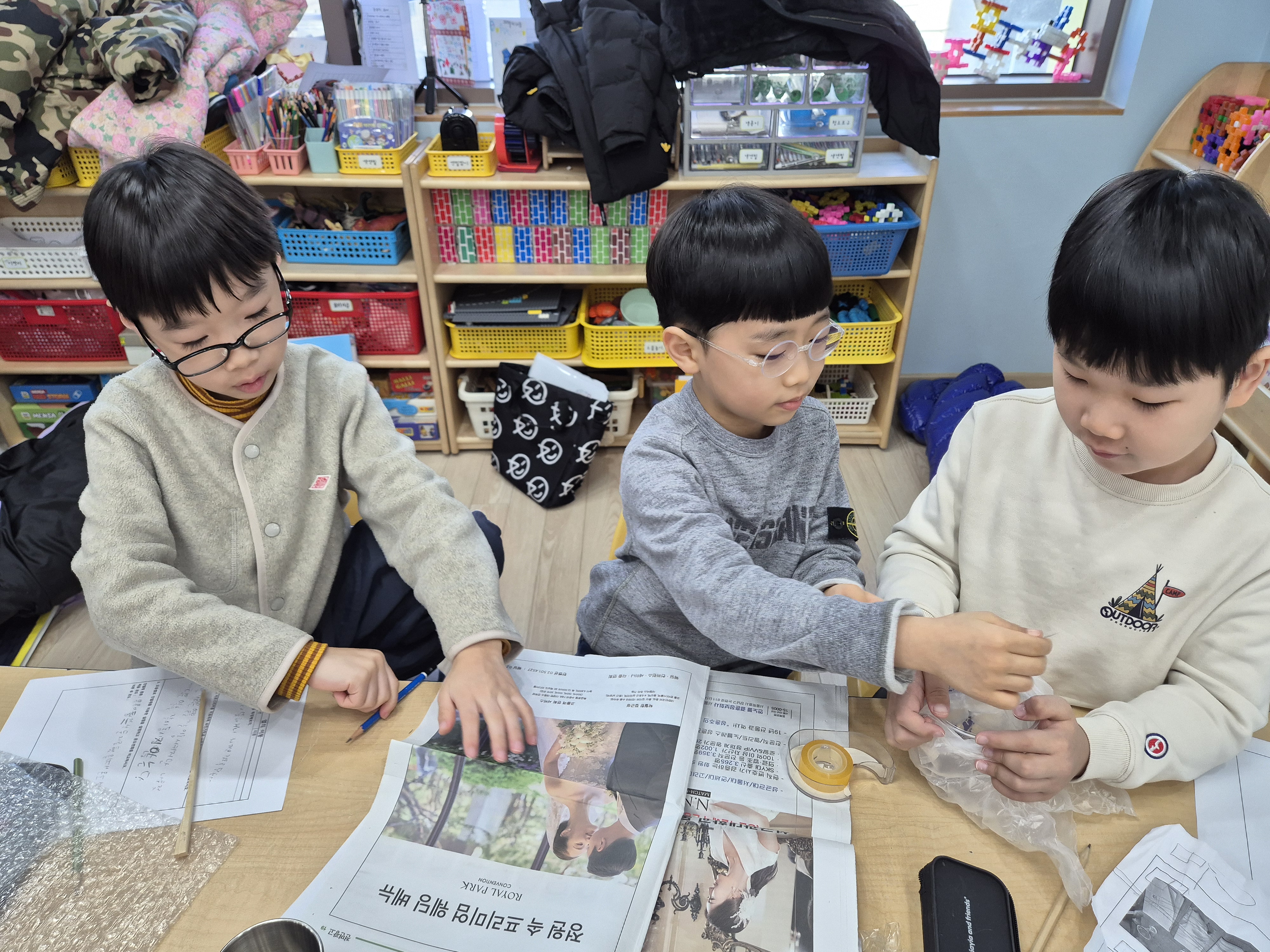 스티로폼, 종이, 헝겊, 뽁뽁이등 다양한 소재를 이용하여