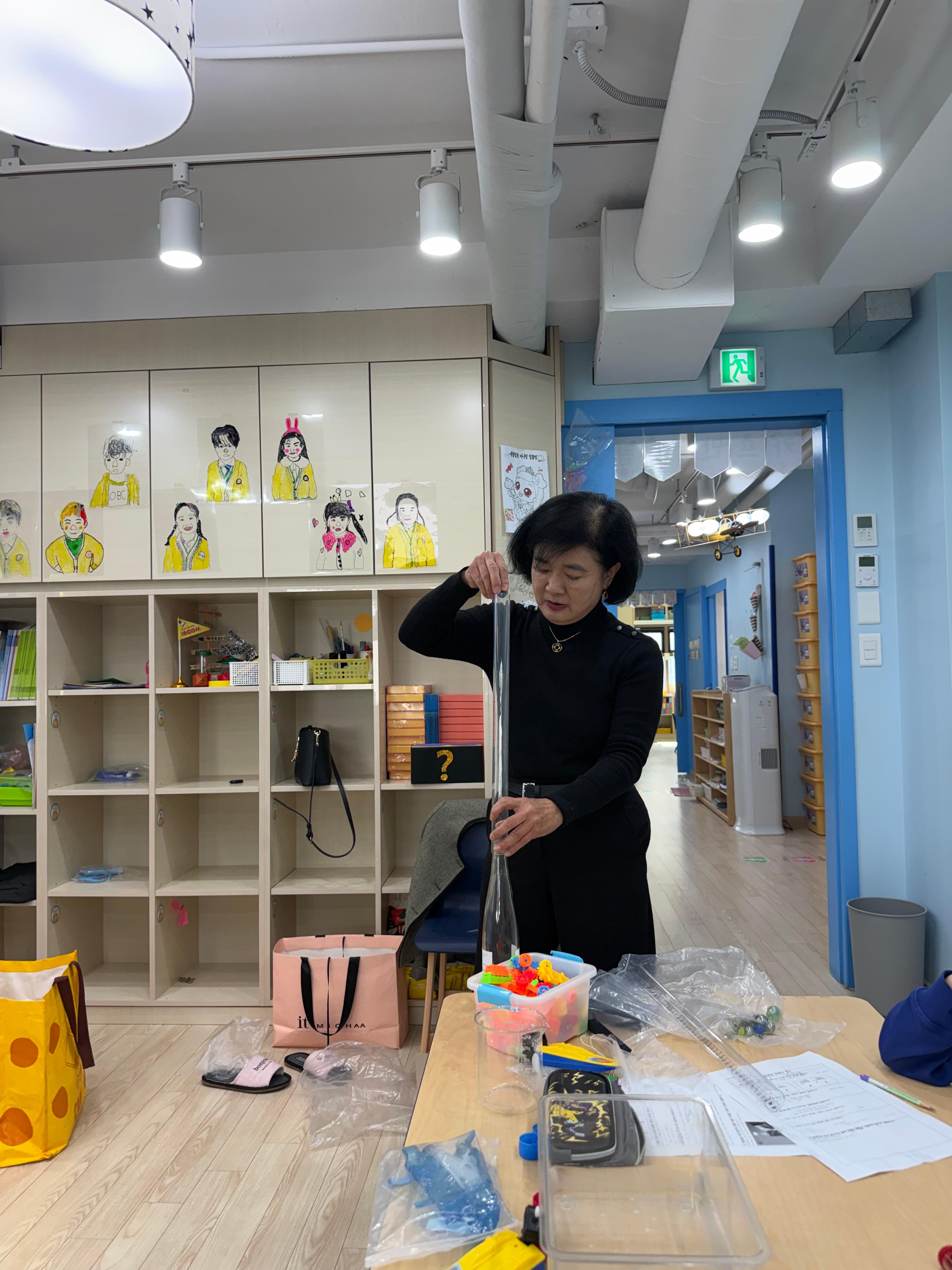 아래 쪽에 나사를 조인 후, 물이 든 페트병에 넣어 뜨게 한 상태에서 시작한다.