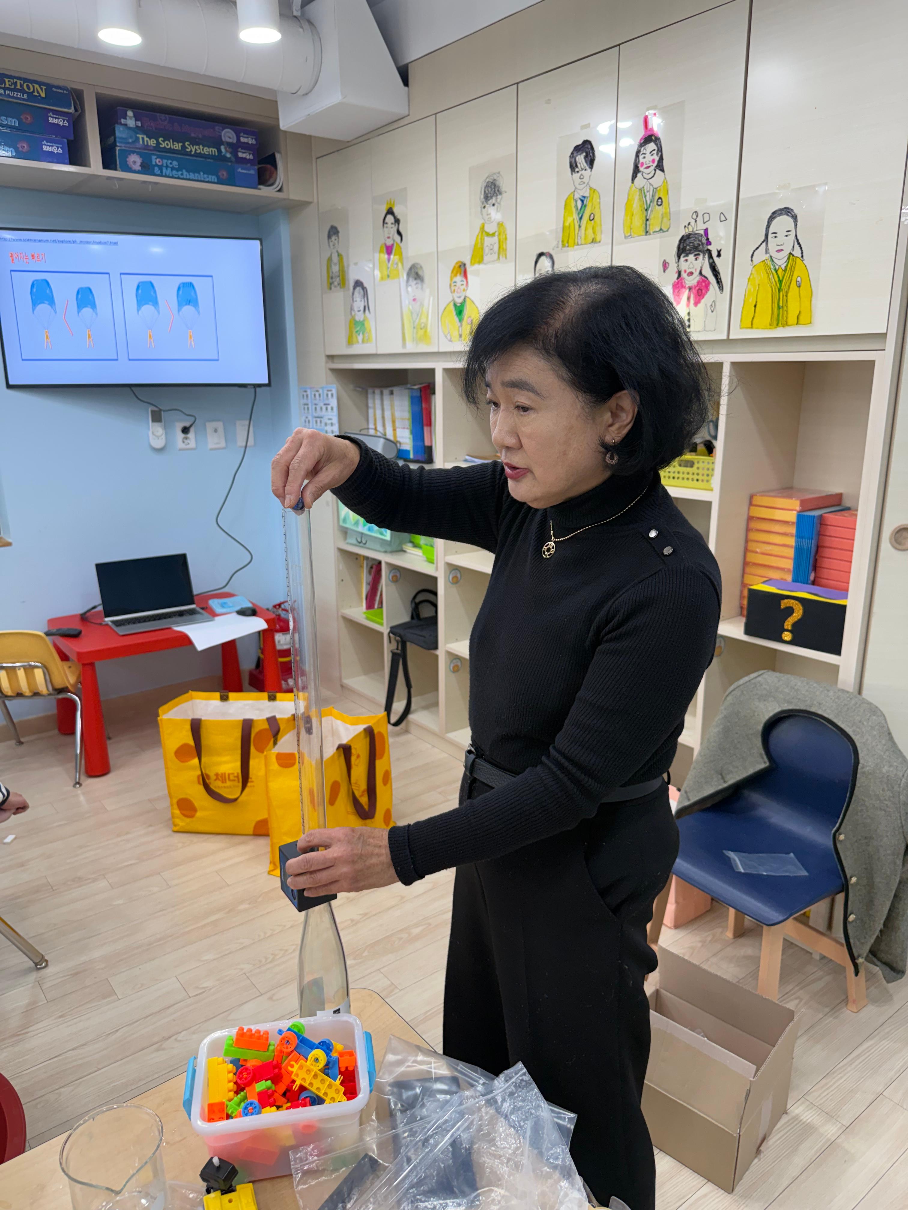 페트병을 누르면 간장종지 안으로 물이 들어가 같은 부피인데도